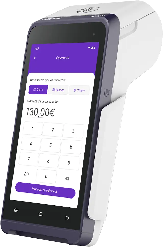 Conçu pour toute activité, notre terminal de paiement allie vitesse d’exécution et simplicité d’usage. Multi-réseaux 4G, Wi-Fi, Bluetooth, le TPE Newland N950S accélère l’encaissement et accepte tous les paiements : carte, sans contact, paiements QR code.